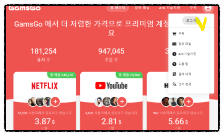 Gamsgo 요금제가 넷플릭스에 비해 저렴하게 보이는 이유는 많은 분들이 서로 공유 시청하기 때문입니다.