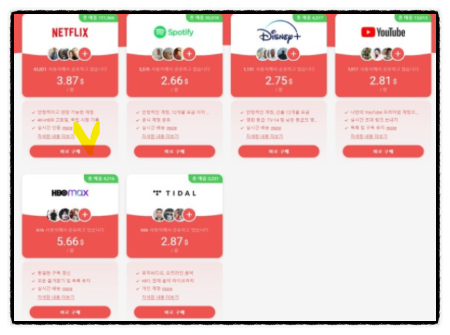 게임스고에서는 아래 스트리밍 미디어 관련 공유 계정 제품을 운영하고 있습니다.