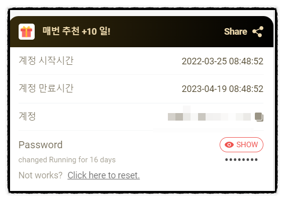 가장 중요한 것, 파티원이 비밀번호를 바꿀 경우 제 계정에서는 영향이 없이 그대로 이용할 수 있습니다.