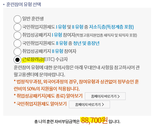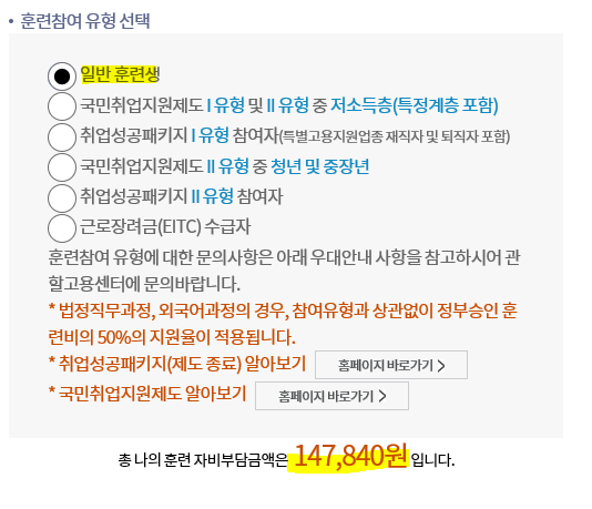 “원래 수강료는 ✅591,330입니다만, 일반 훈련생의 경우 ✅443,490원을 국가에서 지원해 줍니다. ~~!