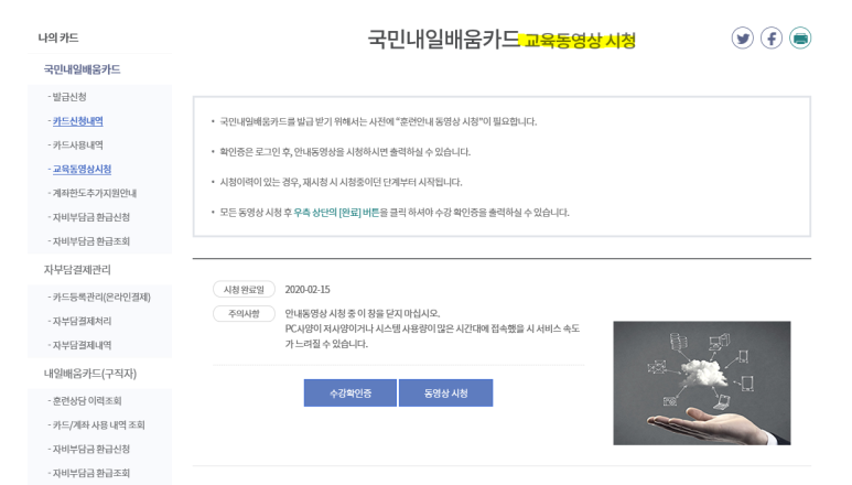 로그인하시면~교육동영상을시청하시고워크넷구직등록후마지막에확인버튼을눌러주시면발급신청완료~!