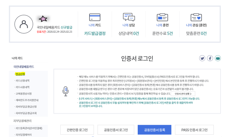 국민을 위한 내일배움카드 발급 신청 후 영업일 기준 4~5일 정도 소요되며, 우편으로 내일배움카드 수령이 가능합니다.