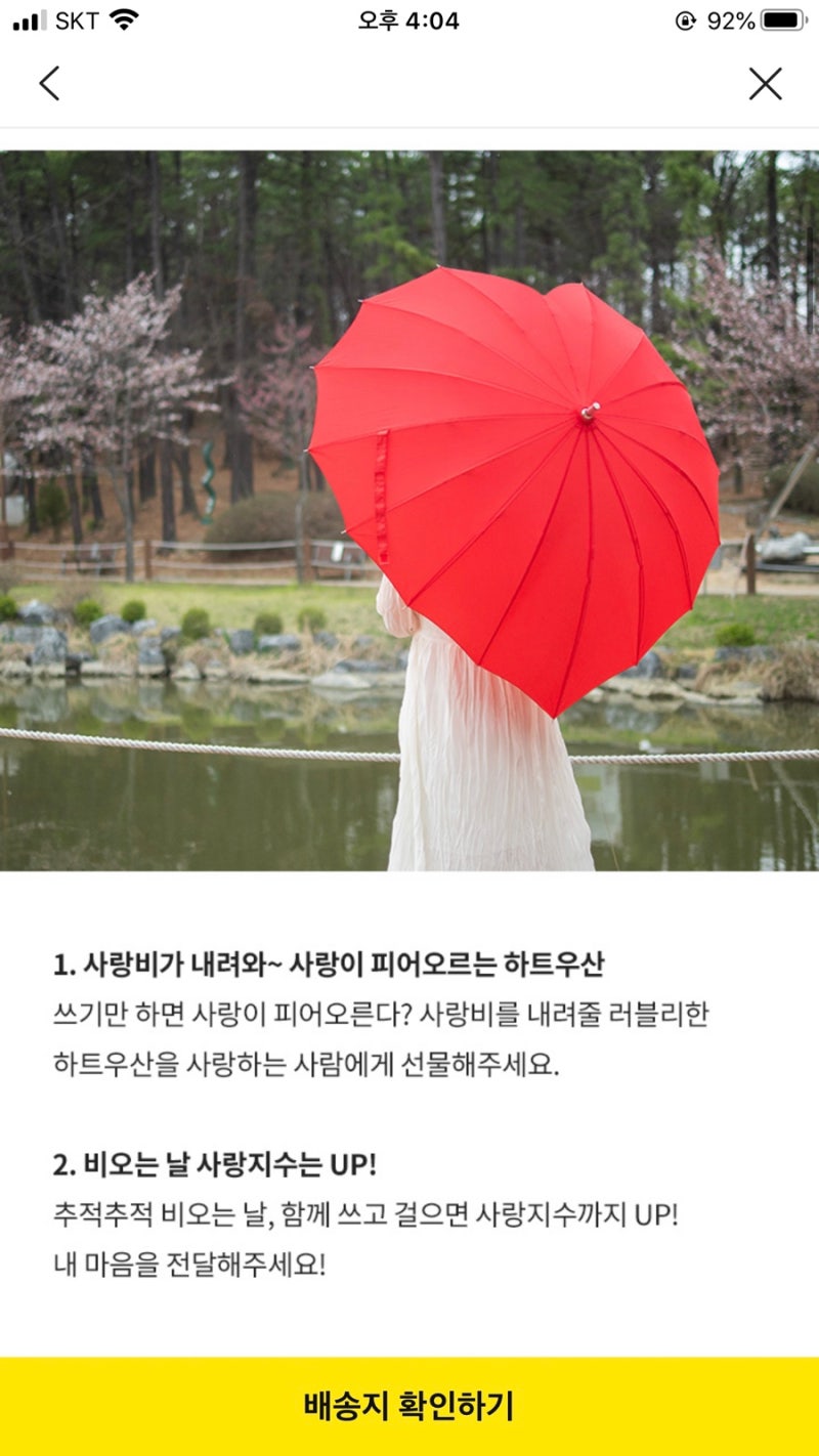 카카오톡은 정말 다양한 걸 많이 팔죠?그리고 살 생각은 없었는데 계속 사라고 카톡을 보내서.. 산적이 한두번이 아닙니다. ㅋㅋㅋㅋㅋㅋㅋㅋㅋㅋㅋㅋ 카톡 하트 우산 이거는… 오 특이하고 예쁘다 우산도 좀 새것으로 갖고 싶은데… 라고 생각하면서 좋네요.눌러놓은 건데… 이번 생일에 선물을 받게 되었어요. 흐흐흐흐><생일에 카톡에 친구 생일 소식 나오잖아요. 그걸 누르고 선물에 들어가면 친구들이 좋아하는 상품이 보이거든요.그런 거 보고 사주면 받는 사람이 더 좋아하겠죠? 이런 방법도 있으니 참고해주세요.저도 거기 좋아해요. 눌러놨더니 보고 사줬어요. 제가 정말 좋아하는 언니가.. 후후 ><