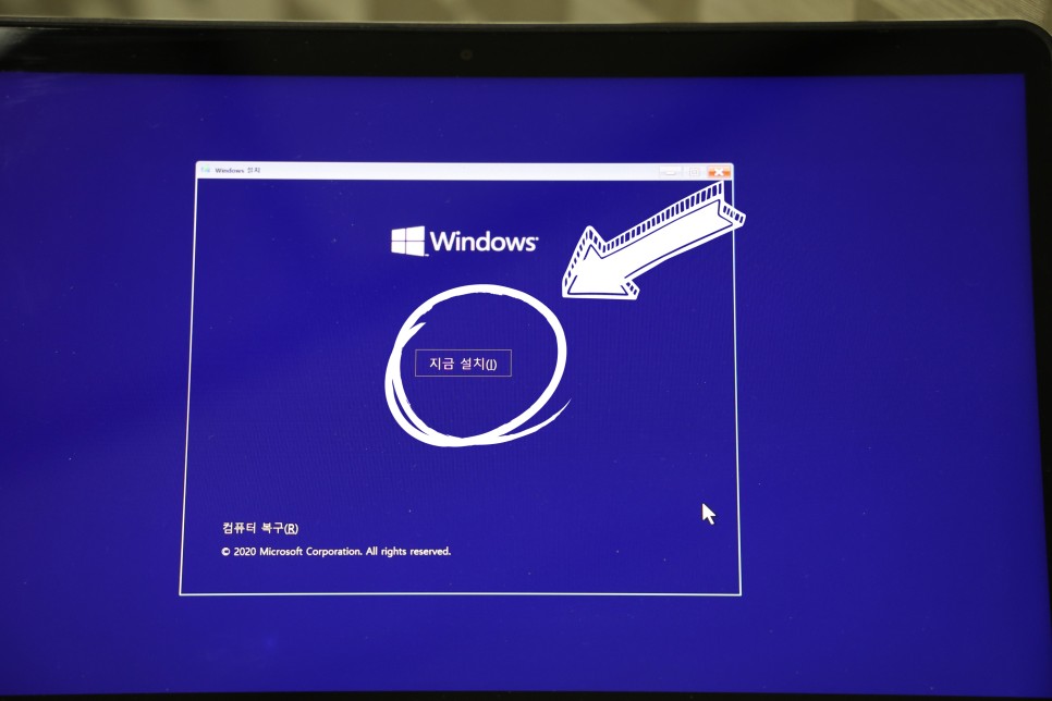 윈도10 설치 U SB가 제대로 인식되면 파란색 바탕에 윈도우가 나타나게 된다.