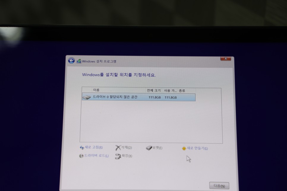 그럼 컴퓨터 포맷의 방식 완료,