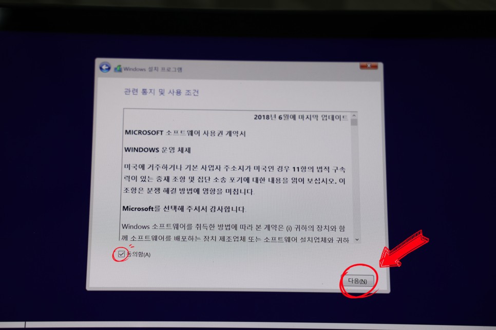 관련 통지 및 사용 조건에 동의함v 체크 후 <다음>을 클릭