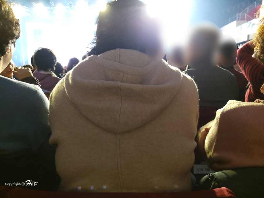 앞에 앉으신 분들의 간격을 살짝… 약간 몸집이 크거나 앉은뱅이들이 앉으면 앞이 아예 안 보이고…겨울이라 코트도 두껍고 답답하기 그지없었다.ㅜㅜ