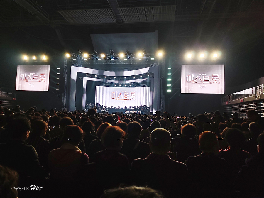 마지막 피날레모든 가수들이 한 무대에 서서 흥겹게 합창을 몇 번인가 미스트로트 콘서트에 참가한 팬들은 모두 알다시피 앞자리로 이동해 함께 즐거워했다.작은언니도 어느덧 사라지고.. 앞자리에서 함께 즐겼다고.. 미스트롯 전국 투어 콘서트 관람 후 총평은 좌석이 정말 별로야! 또 다른 장소에서도 그럴지 모르지만 고양실내체육관은 주차요원이 한명도 없어서 나중에 콘서트가 끝나고 주차장이 전쟁통.. 뒤따르는 오후 콘서트 입장객차까지 몰려들어 북새통을 이뤘다.우리는 주차장에 차를 둔 채 비교적 건강했던 동생 차에 모두 함께 타고 주변 식당에 가서 저녁을 먹고 천천히 돌아와 한적한 주차장에서 차를 빼고는 집으로 돌아왔어.주차장 직원은 물론 콘서트 직원까지 왠지 허전했고, 많은 사람이 몰린 콘서트가 분주하게 진행된 것이 흠이었다.