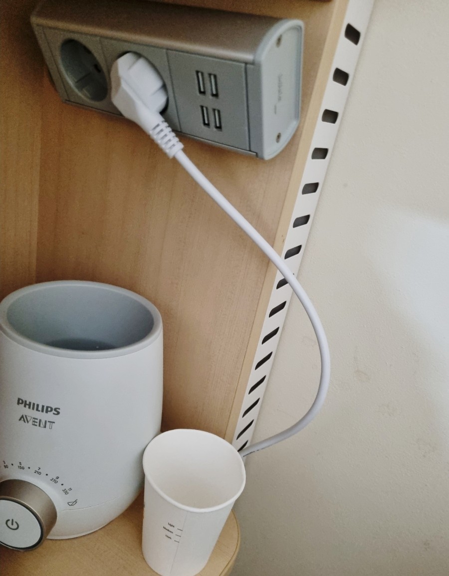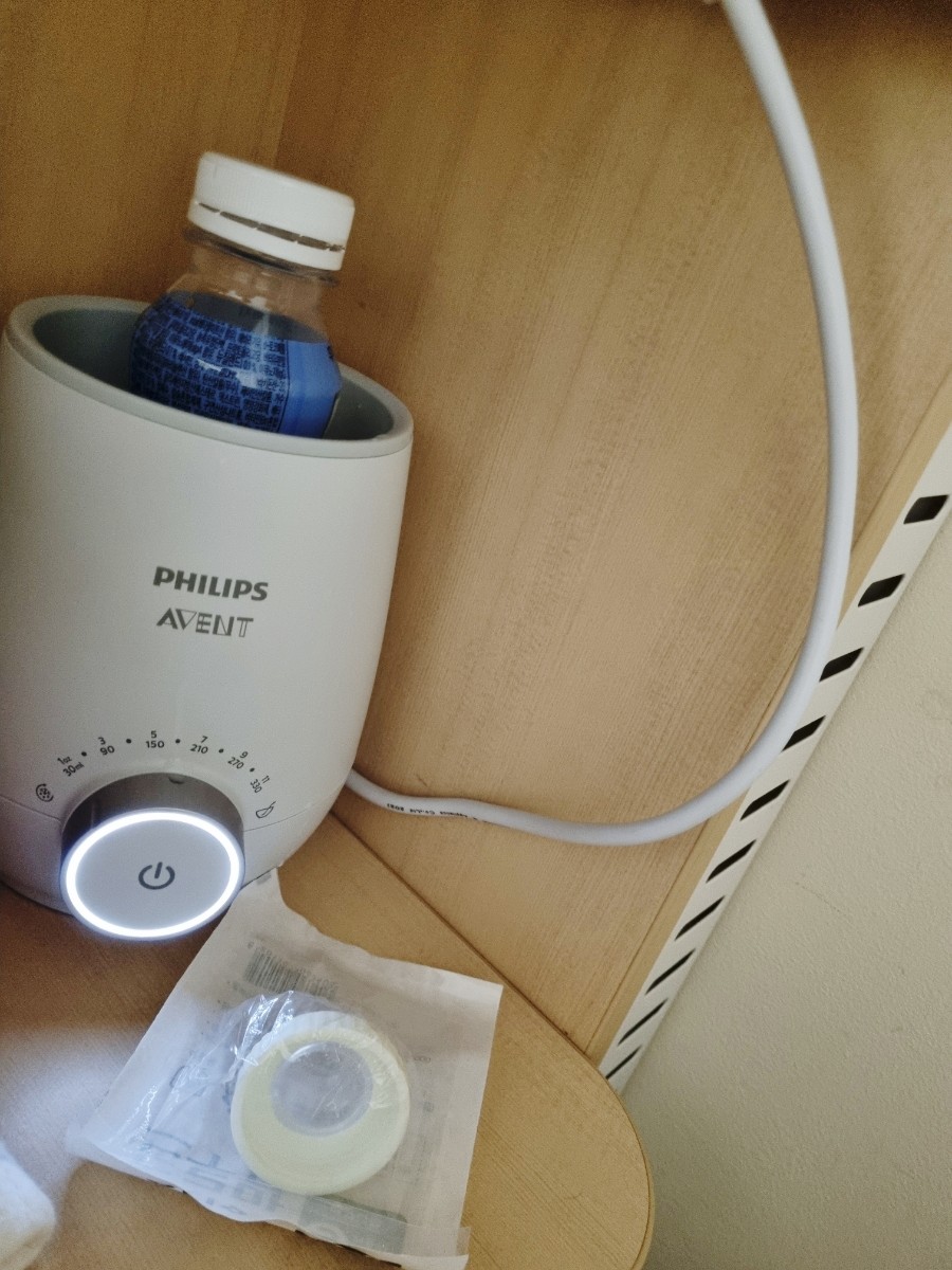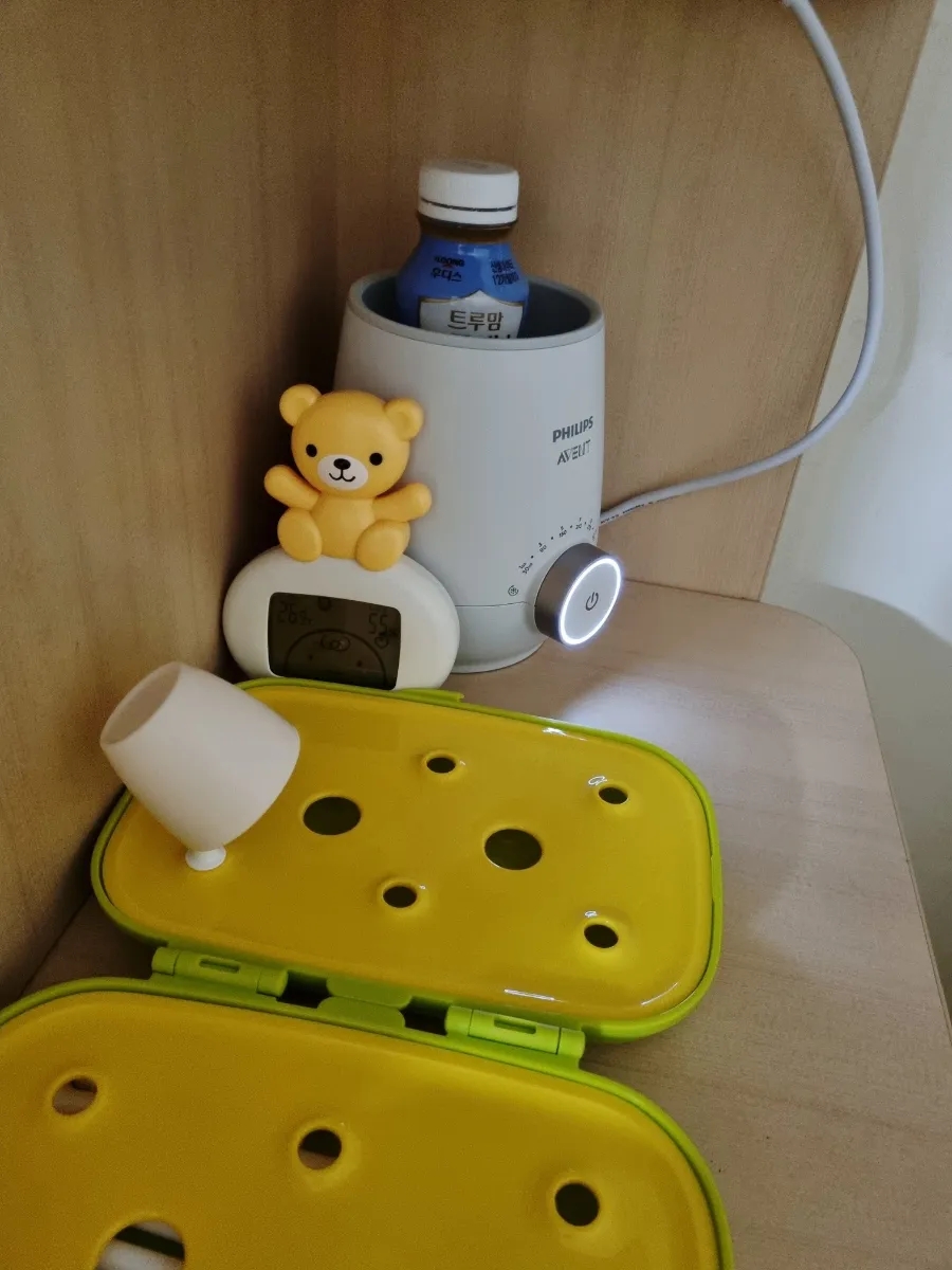 필립스 아벤트 온도 센서 보틀워머 정수기 필요~정수기는 배선실에 있다.물을 붓고 분유를 데울 준비를 한다.