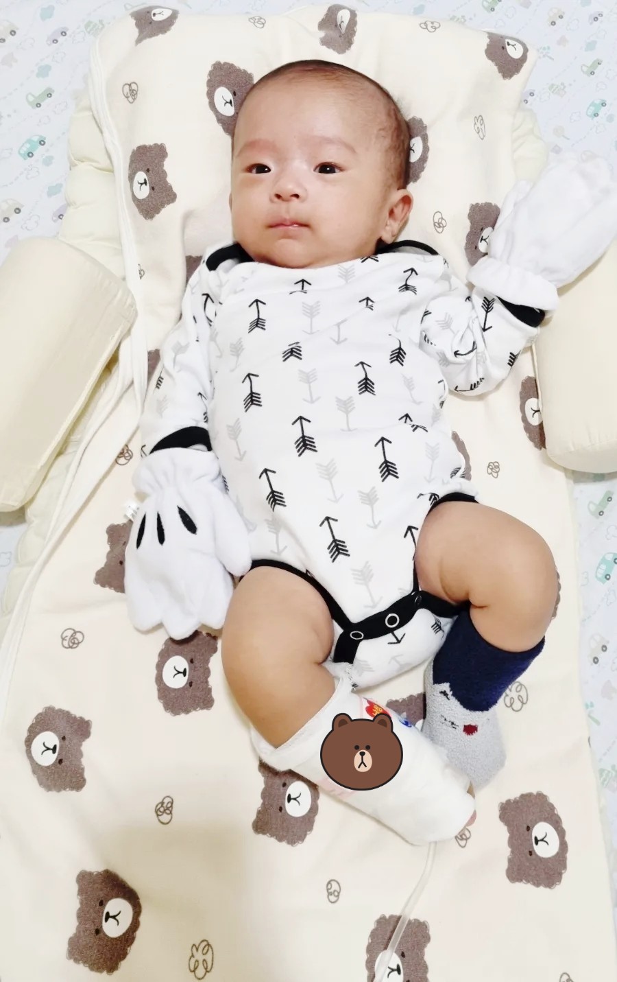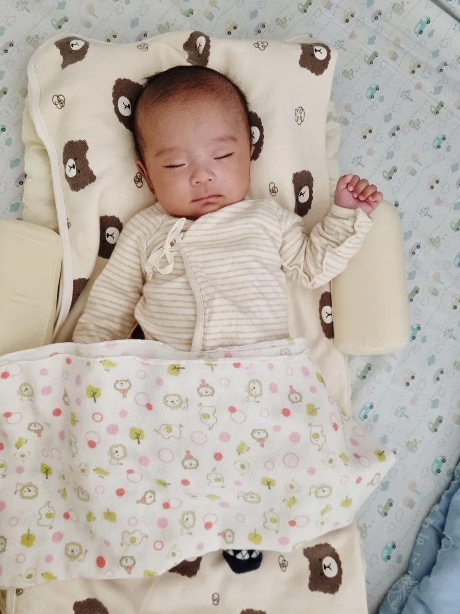 다리에 주사를 맞았어요.♡ 주사를 맞을 때까지 분유를 먹이지 마십시오.