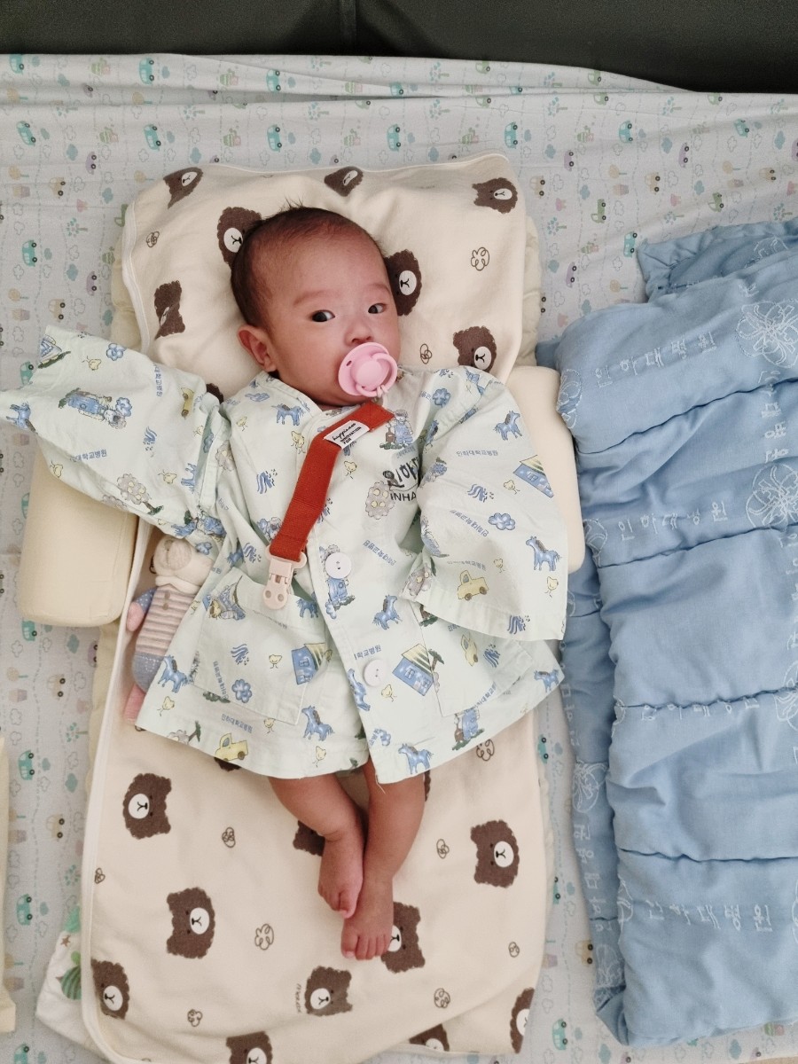 ▲가장 작은 환자복♡집에서 검색대병원에 입원한 아기의 팔통 넉넉한 옷을 가져갈 수 있고 다리에 주사를 놓는 통통한 바디수트가 좋고 손에 맞을지 몰라 고민 끝에 옷을 많이 가져왔다.