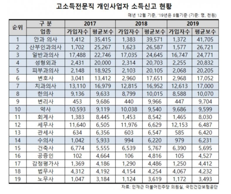 펌) 문이과 전문직 순위 top16