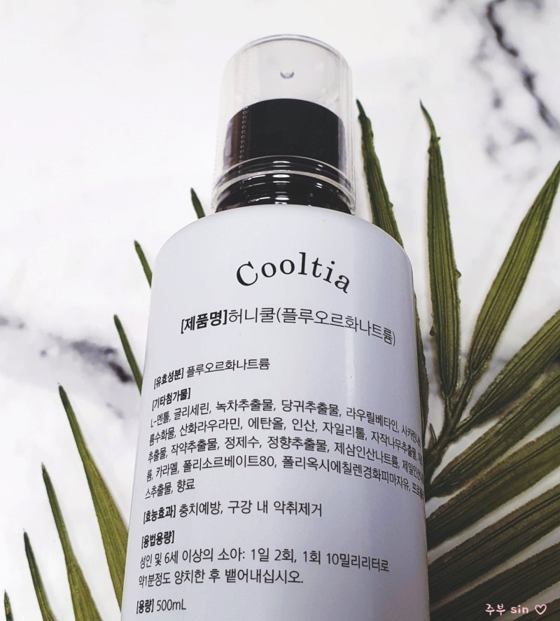 용량은 500ml로 오래 사용할 수 있을 것 같습니다.이거 한 번에 구강 내 세균이나 단백질 찌꺼기가 크루티아에 들어 있는 프로폴리스 성분에 의해서 다 배출된다고 합니다.