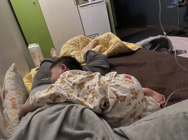 원래 네블라이저에 마스크도 있는데 잘 때 해보면 귀신처럼 마스크 쓰고 있는 거 알아버려서 그냥 저러고 있었는데 ㅜㅜ(눈물) 근데 아예 안 하는 것보다 낫지?