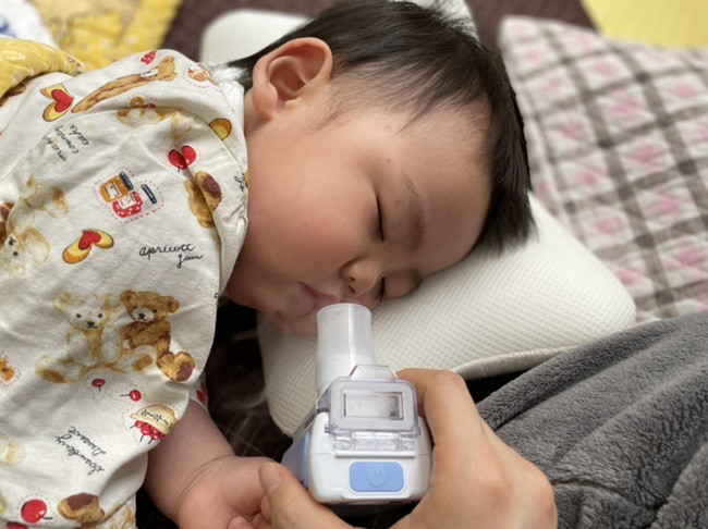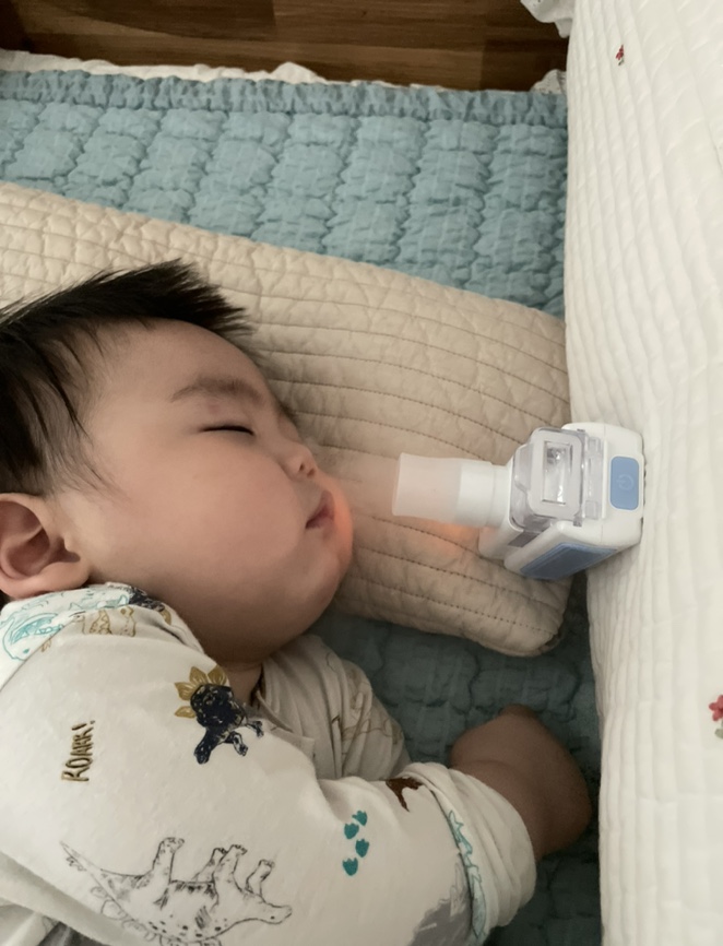 대망의 네블라이저 처음에 할 때는 깼을 때 하면 울면서 네블라이저 해서 서로 힘이 빠져서 많이 힘들었는데 의사 선생님이 잘 때도 해도 된다고 해서 이것도 숙면할 때 몰래 했어