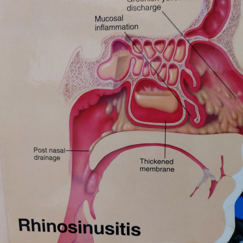 부비동염의 특징이 증상이 호전돼도 영상상(뢴트겐이나 내시경상)의 호전 반응이 느린 경우도 많아 실제 환자의 경우 자신의 몸속에서 배농하는 과정을 직접 확인하고 싶은 성향이 전보다 훨씬 높아졌기 때문입니다.