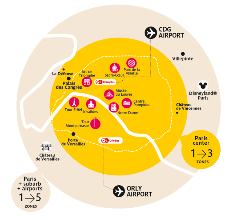 파리는 1-5구역으로 나뉘는데, 각 구역마다 대중교통 요금이 다르다