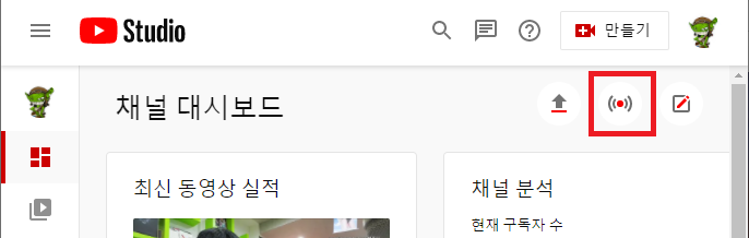 • 실시간 스트리밍 시작을 눌러 스트리밍 대시보드를 엽니다.