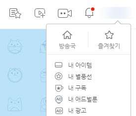 • 아프리카TV 홈페이지에 로그인 후 본인 방송국에 접속합니다