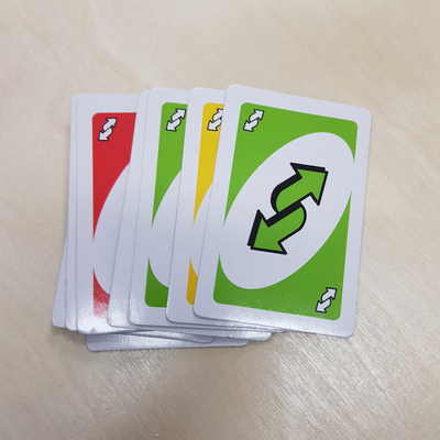 리버스 카드는 게임 진행 순서를 거꾸로 바꾸는 능력의 카드다.당연히 이전 카드 색상과 동일한 색상의 리버스 카드만 사용 가능.