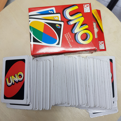 우노(UNO)는 원카드 게임과 규칙이 같다.제일 먼저 손에 쥔 카드를 던져 버리면 끝나는 게임이므로 순식간에 간단하다.