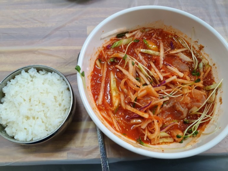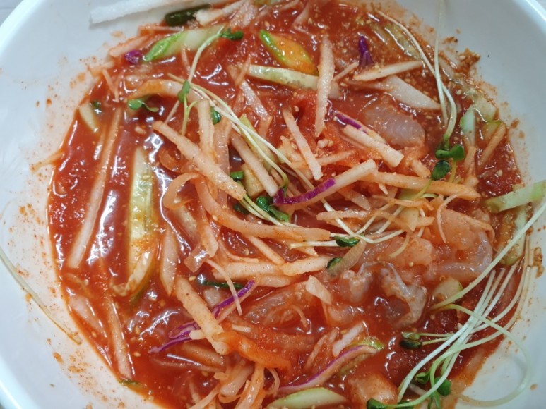 잘 섞어서 회맛을 먼저 볼 수 있는