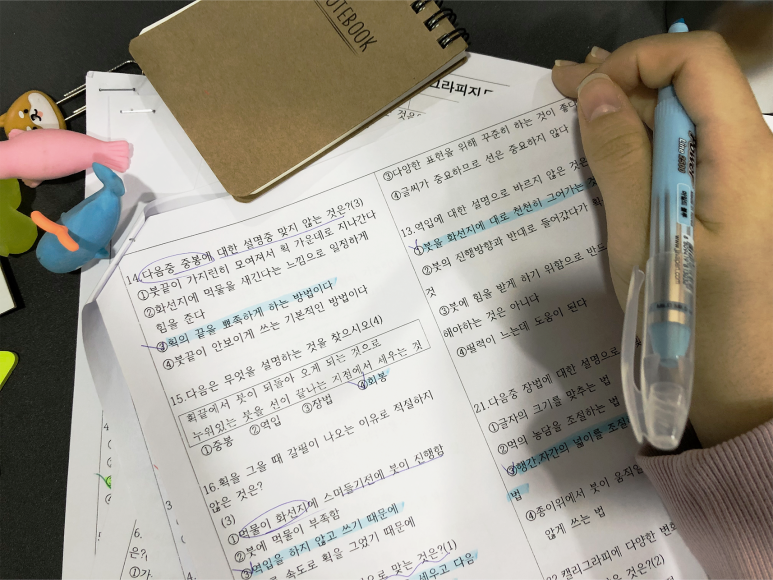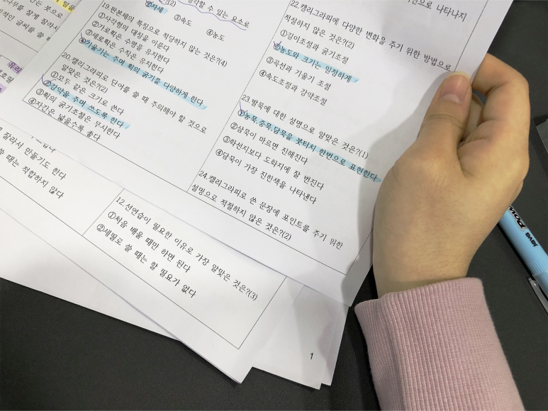 뜨개질도 진심이었고 그림 그리는 데도 진심이었죠. 캘리그라피 자격증에는 왜 관심을 안 가졌지? 라는 생각이 들더라고요 슬슬 찾아두었던 취미가 지겨워지는 참이었어요.