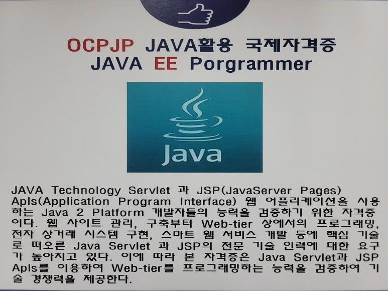 그래서 OCA JP 시험을 치르기 위해서는 JAVA 코딩 언어에 집중! OCP JP 시험을 치르기 위해서는 Java 선행 후 JSP 웹 프로그래밍 백엔드 과정에 집중해야 합니다.