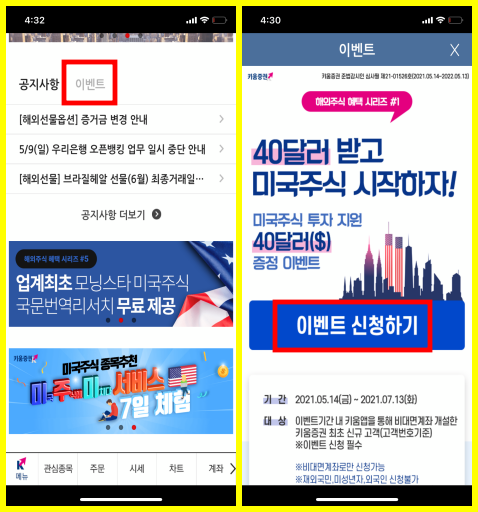 ▲ 제가 키움증권에 가입하는 시점에 ’40달러 드림’ 이벤트가 진행됐는데 지금 확인해보니 참여할 수 있었습니다. 이벤트에서 제공받은 40달러로 몇 가지 종목을 시험 삼아 사 보았습니다.해외주식을 사는 방법이라고 해서 특별히 어렵지는 않습니다. 해외주식을 사는 방법은 국내주식을 사는 방법과 동일하므로 아직 키움 계좌가 없고 참여 가능하신 분이라면 ’40달러 드림’ 이벤트도 꼭 신청 후 참여해 보시기 바랍니다. 키움증권 비대면계좌 개설