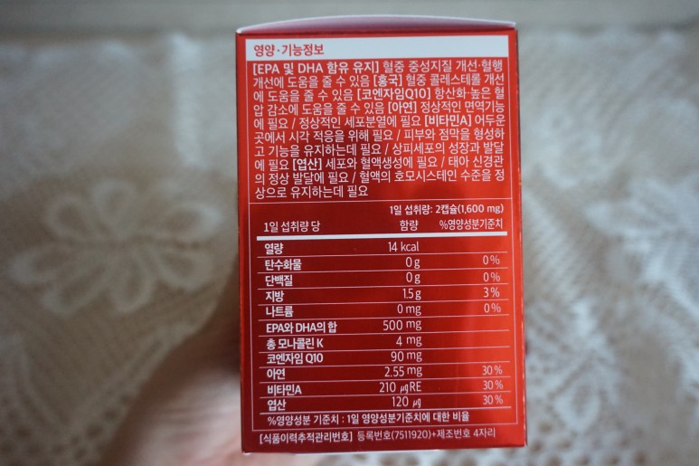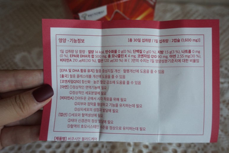 콜레스테롤 개선을 위해 남편이 먹고 있는 복합 영양제인데 혈압 정상치 관리에도 도움이 된다고 해서 저도 같이 먹고 있습니다