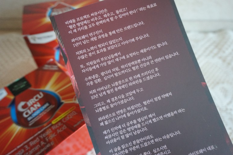 저는 혈압 정상치 유지와 건강을 위해 규칙적인 운동과 함께 혈액순환 개선제를 섭취하고 있습니다.