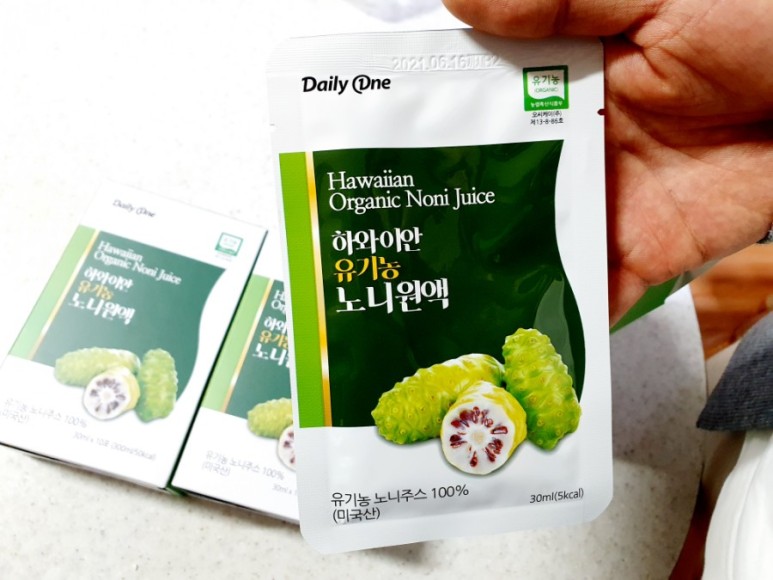 그래서 팩에 개별 포장되어 있는 노니 주스를 찾다가 데일리 원 하와이안 유기농 노니 원액을 복용해 보게 되었습니다