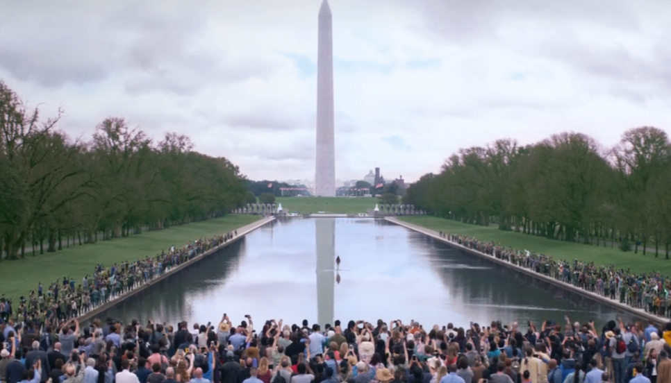 한동안 잠자코 있던 알마시히는 스스로 목적지를 정하지 않고 신의 인도를 향합니다. 수많은 추종자들과 도착한 곳은 워싱턴이었어요. 내셔널 몰 앞에 선 그는 자신을 부정하는 자들 앞에서 보란 듯이 물 위를 걸어갑니다.