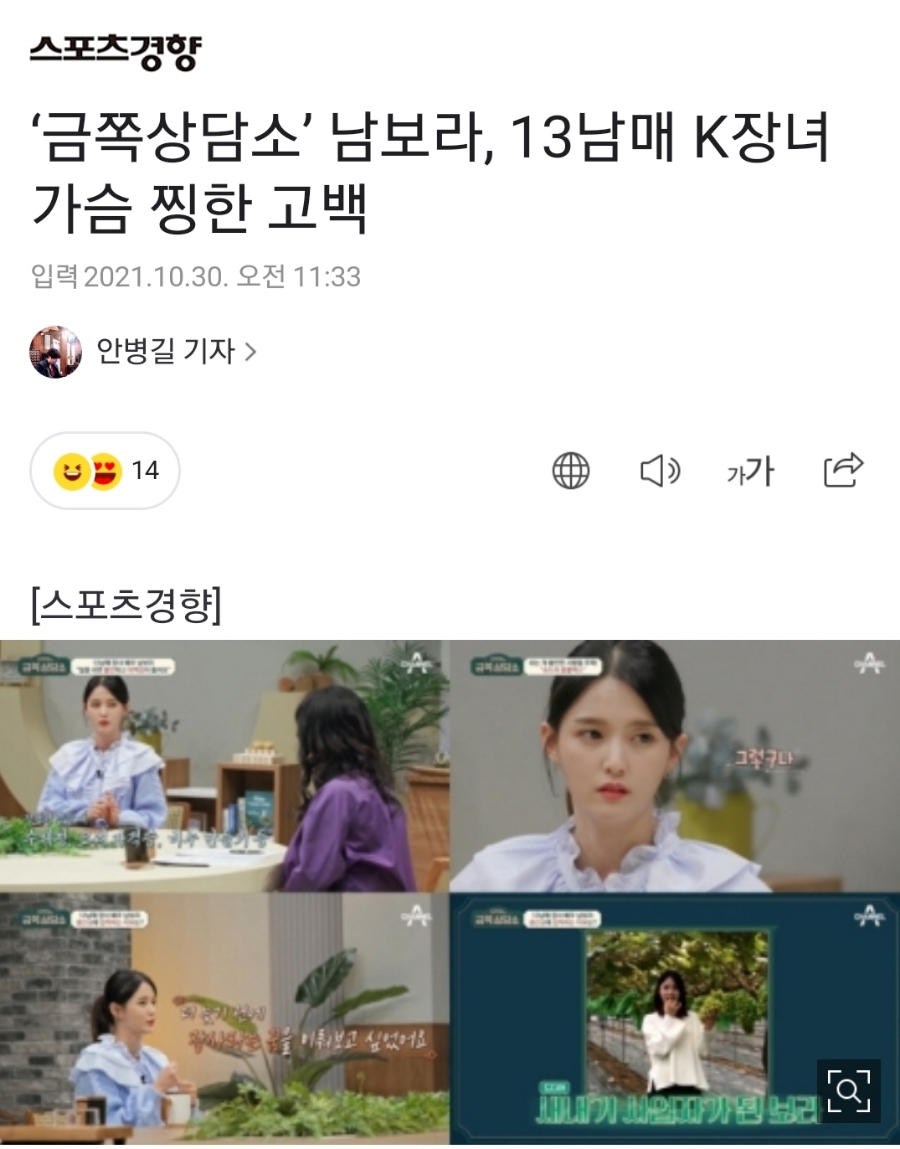 채널A 방송에 출연하셨네요.그리고 들려준 세상을 떠난 여동생 이야기.. 남보라는 정말 가족이 많네요.오은영의 금측상담소에서 배우 남보라의 고민을 함께 살펴보겠습니다.