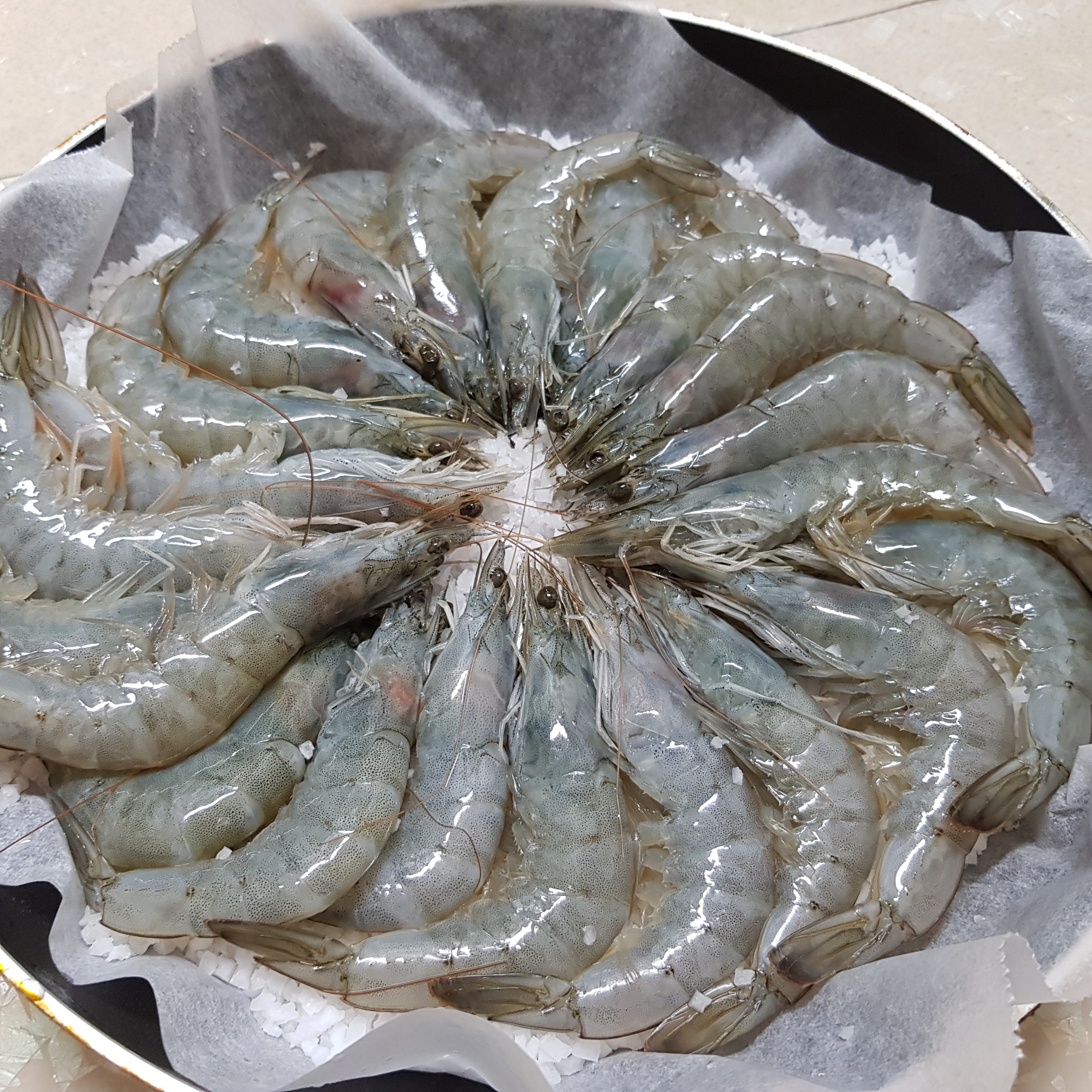날씨가 갑자기 추워졌는데 건강 조심하세요. 나는 어제 외출했다가 얼어 죽는 줄 알았어요.^^;가을에는 새우(대하)가 제철이잖아요~ 가을이 되면 꼭 먹어야 하는 음식 중 하나예요. 너무 맛있어요. ^^ 바닷가 근처 횟집에 가면 새우구이 파는 걸 꼭 먹긴 했는데~ 새우를 사와서 굵은 소금을 깔고 집에서 만들어 먹어도 맛있어요.~쿠킹호일을 깔아도 되지만 저는 종이호일을 깔고 새우소금구이를 만들고 있어요~ 흰다리새우 손질, 새우소금구이 칼로리까지 천천히 알려드립니다.