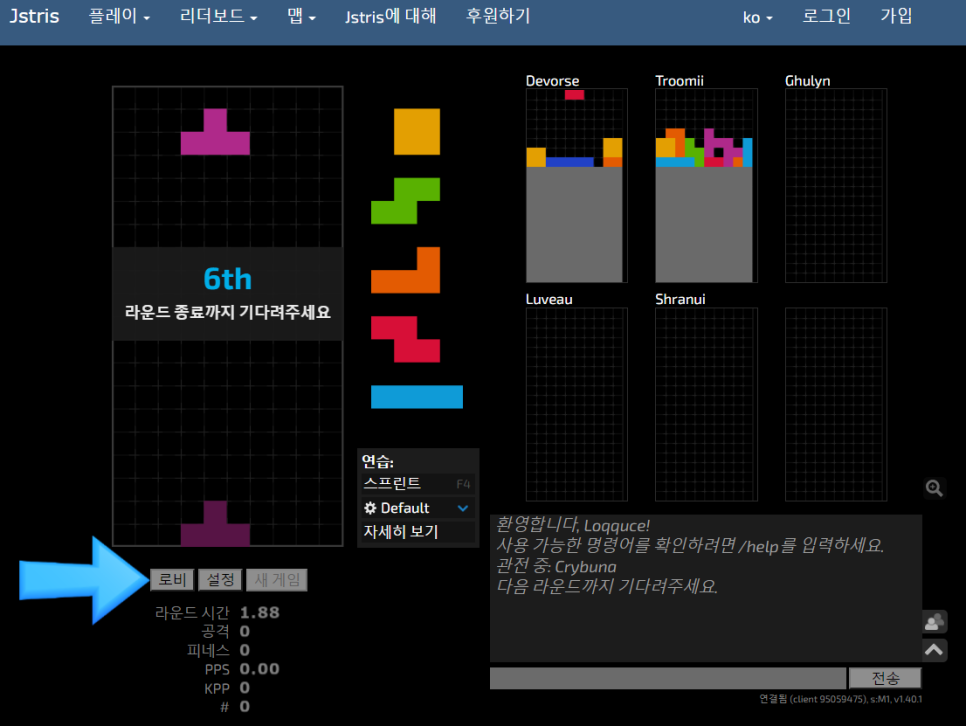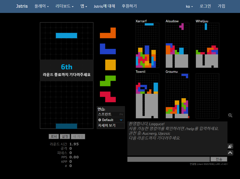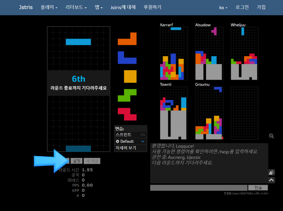 1.jstris테트리스의 방식 2. 키 설정 3. 혼자 하는 방법 4. 친구와 하는 방법 5. 전 세계의 테트리스 유저로 하는 방법 jstris테트리스의 방식에서, jstris주소를 가르쳐습니다. jstris.jezevec10.comJstris Play Leaderboard Maps About Donate en Login Register Practice modes Sprint 20 40 100 1K Cheese race 10 18 100∞ Survival Ultra 20TSD PC Mode Free play Practice:Sprint F4 Default Show less Lobby Settings New game Time Attack Finesse PPS KPP#CONNECTION LOST!Not connected to thegame server, … jstris.jezevec10.com 링크로 들어오셔도 되고,