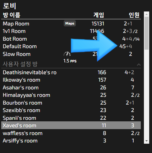 이렇게 방이 많이 나와요.화면에 있는 방 만들기를 눌러 비공개로 방을 작성하면