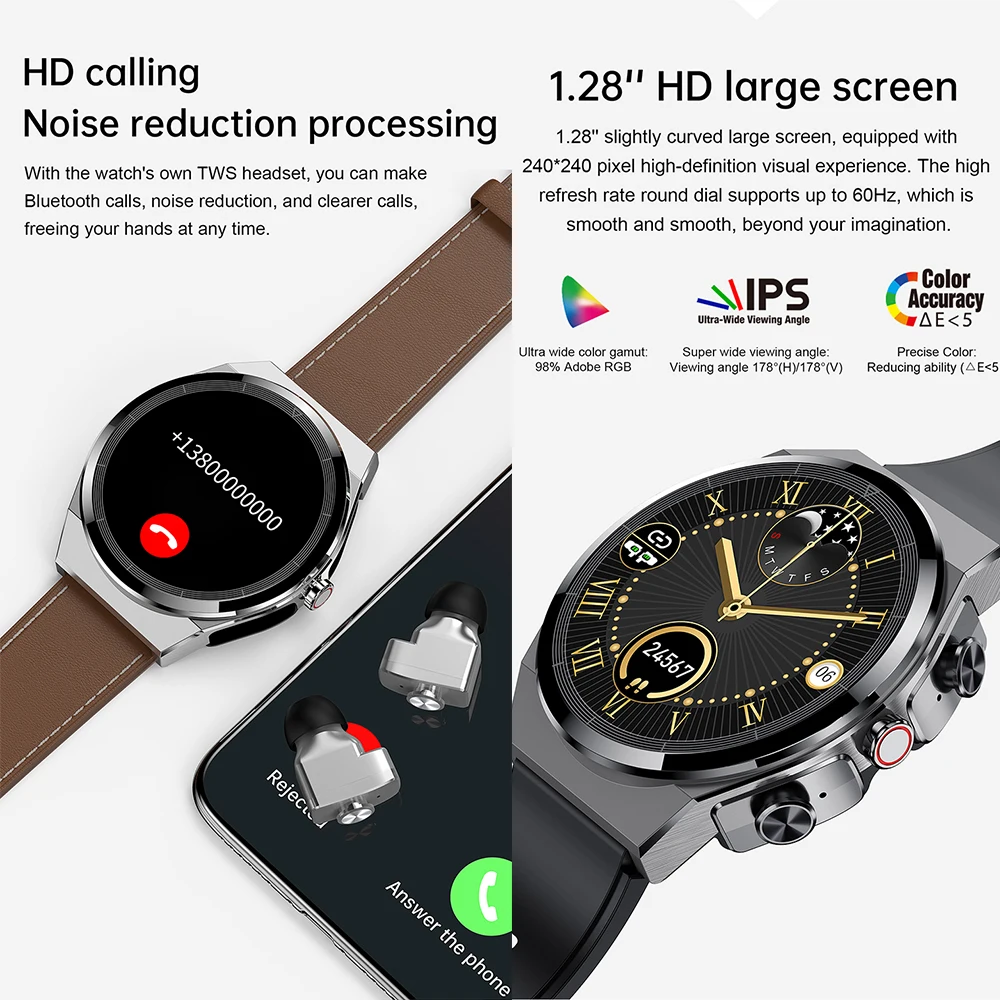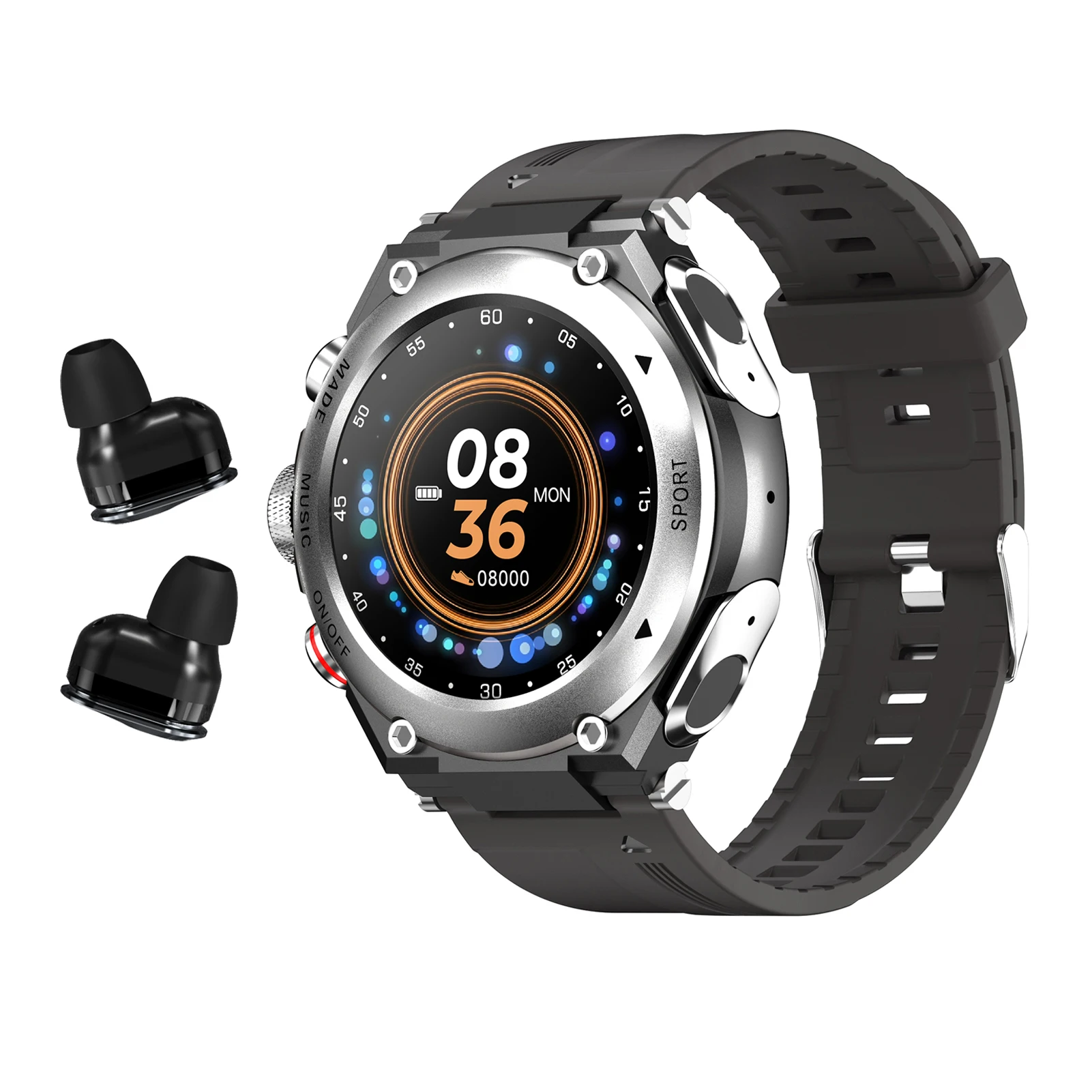 N82 in 1 Smartwatch with Earbuds:세련된 디자인, 스마트 팔찌 내부에 TWS이어 버드 첨부. 날씬한 팔찌 몸통과 이어 버드. 쉽고 친근한입니다. 쾌적한 착용 경험 0.96인치 TFT터치 스크린, 일상 활동 추적, 통화 및 운전 중 음악 감상에 적합합니다. 대부분의 스마트 폰(Android 5.1및 iOS 8.0이상)와 호환됩니다. 주요 기능:Bluetooth듀얼 이어폰, 멀티 스포츠 모드( 걷기/달리기/배드민턴/축구의 총 8개의 스포츠 모드), MSM푸쉬, 심박 수 모니터링, 수면 모니터링, 혈압, 원격 사진 촬영, 다양한 화면 2개의 스테레오 TWS이어 버드. 각각 독립하고 또는 함께 사용할 수 있습니다. 사용 중 문제나 불편한 점이 있다면 아마존 메시지를 통해서 판매자에게 연락하면 12시간 이내에 해결 방법을 회신 드립니다.