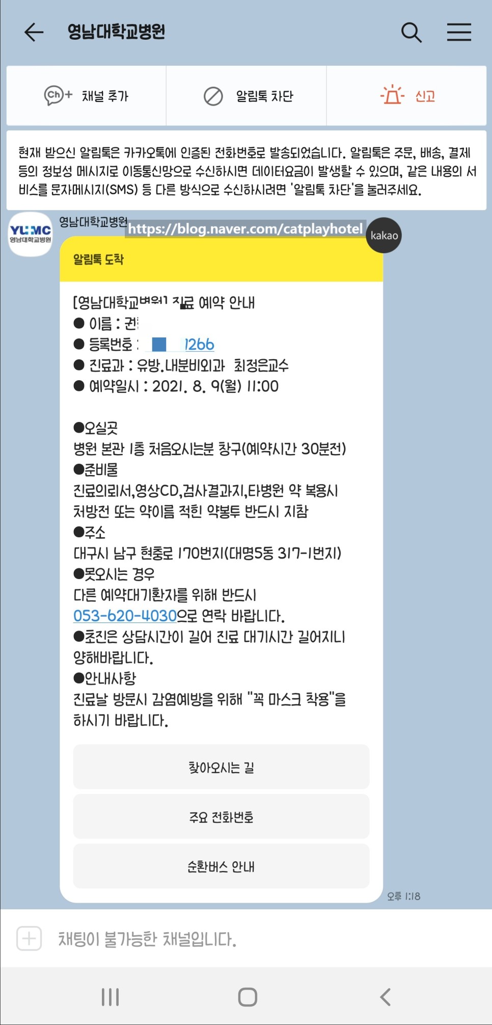 가장 빠른 진료가 8월 9일이므로 그때 첫 진료를 받을 것 같습니다.