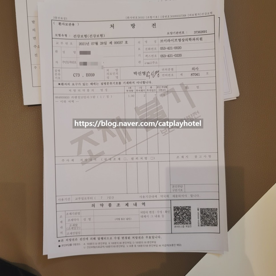 이틀이 지난 7월 28일에 병원으로 갑상선 기능 항진증 약을 먹으러 재방문했습니다.