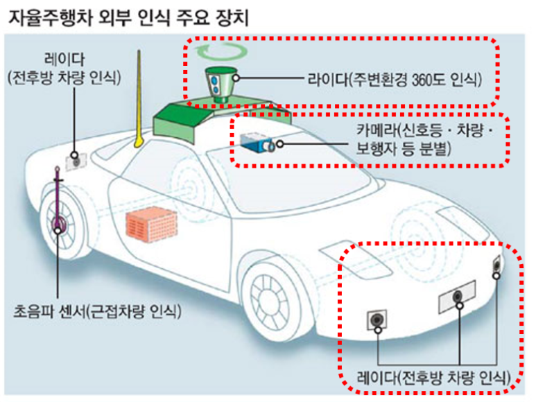 카메라를사용하면영상처리기술을통해서사물을인식하고자동주행을하는건데요.