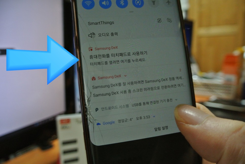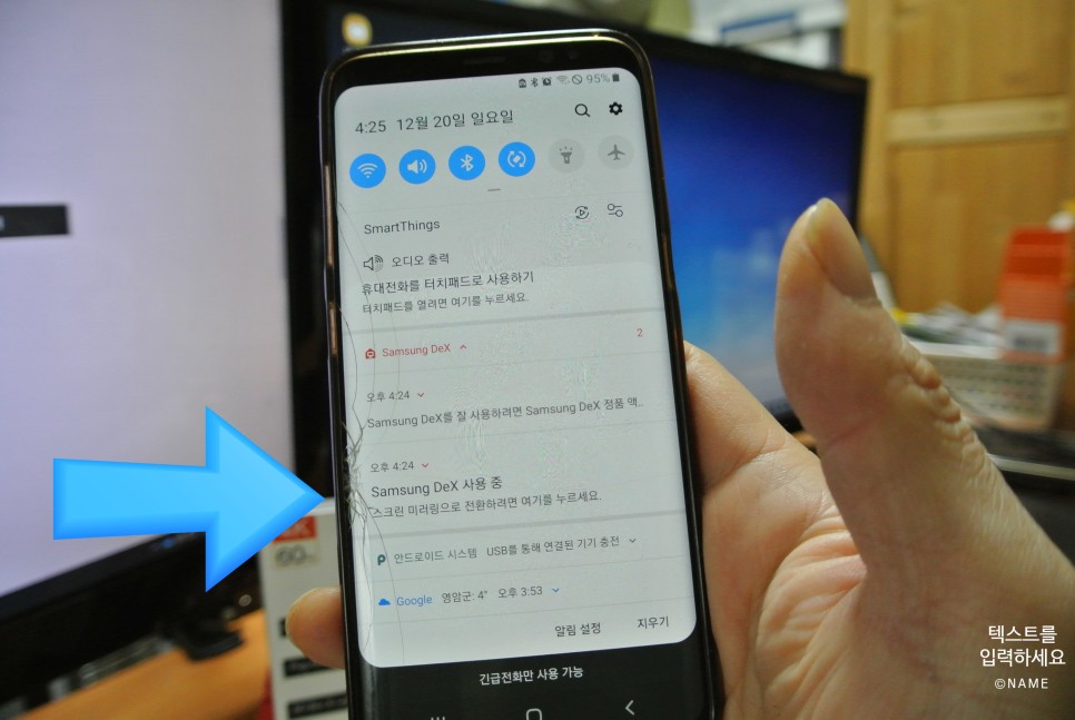 위 화면에서 화살표를 누르면 덱스 방식으로 스마트폰을 사용할 수 있습니다.