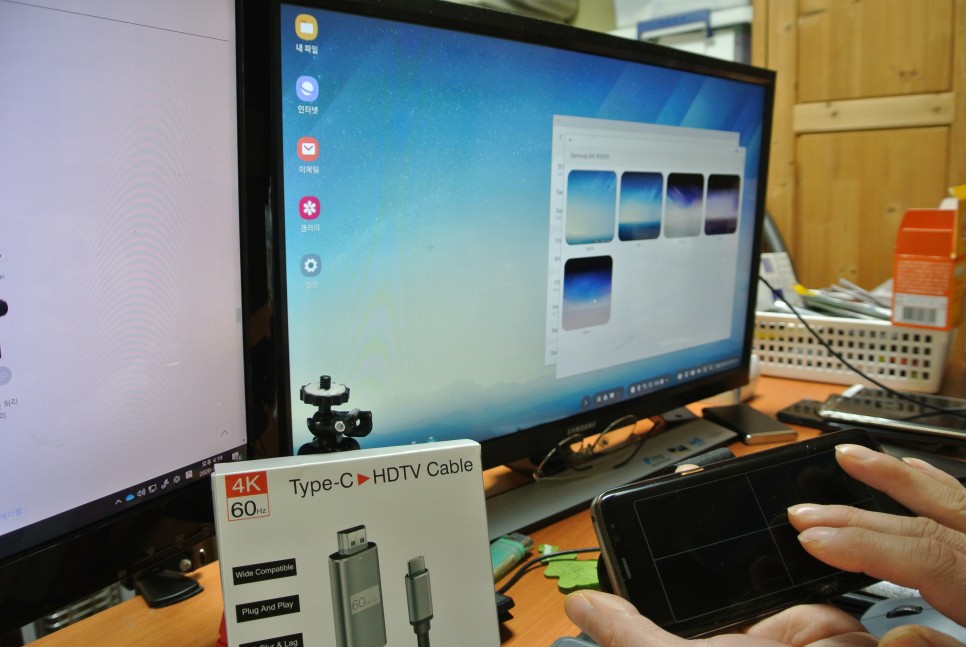 위 화면은 덱스 방식으로 접속한 화면입니다.마치 완도우 화면 같은 화면이 나옵니다.이렇게스마트폰을컴퓨터처럼사용할수있게되어있습니다.스마트폰이 마우스와 키보드 역할을 합니다.스마트폰을 컴퓨터처럼 사용하는 모드라고 보시면 됩니다.