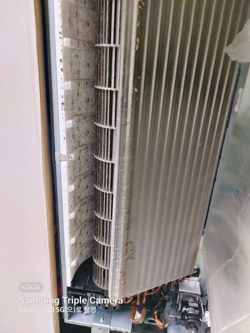 처음 청소를 의뢰한다는 고객님!사계절 사용하는 냉난방기를 몇 년 동안 관리하지 않았다니 심한 오염을 예상합니다.