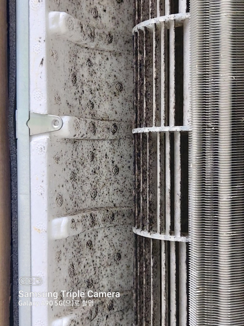 필터 부분은 거의 막혀 있습니다.천장형 냉난방기는 필터 세척조차도 셀프 관리가 어려운 부분이 있습니다.