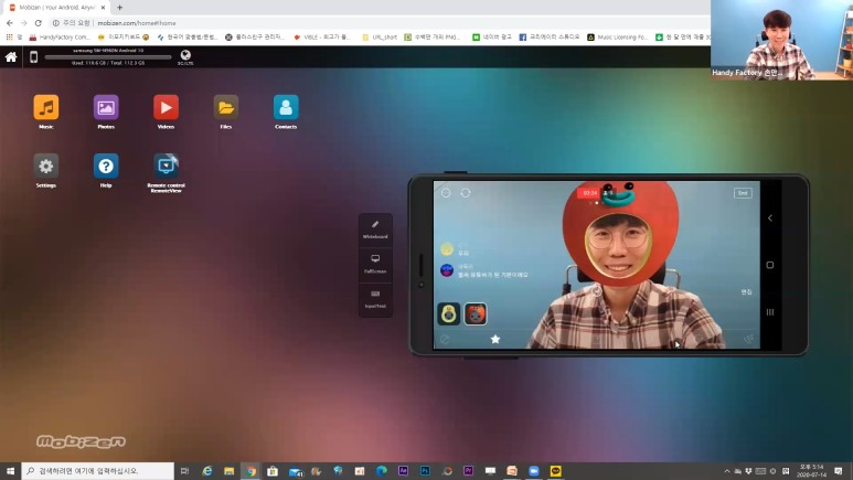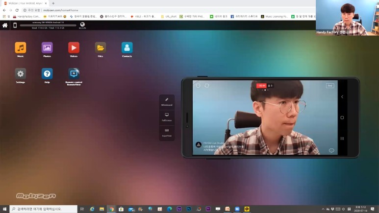 실제 제 모습을 모바일 화면에 띄워서 보여드렸어요 다른 프로그램에서 쉽게 라이브를 할 수 있다는 간편함이 있죠 여러분들 반응이 ‘헐…’ 이렇게. 간편한 대신 보여줄 수 있는 기능도 제한적이긴 하죠?