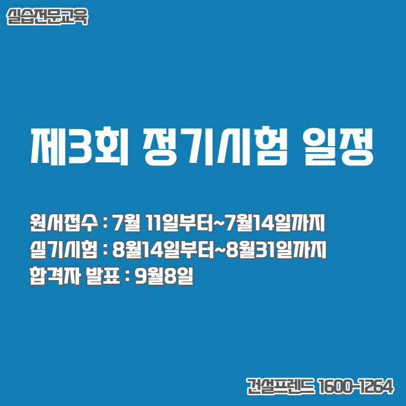 이제 그리 멀지 않은 7월 11일부터 다시 기능사 3회 원서접수가 시작됩니다.벌써 여름이라고 생각했는데, 기능사 시험은 벌써 중반이 지났기 때문에 조금 초조할 수도 있습니다.천리길도 한걸음 부터라고 했으니 합격생이 진짜 증명하는 이곳 건설프랜드에 오셔서 편하게 원서접수도 도와주시고 실제시험도 빨리 합격하시길 바래요~