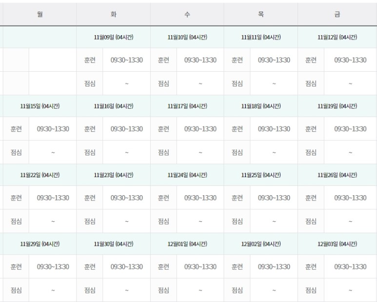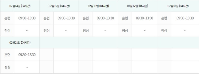 상세 시간표는 고용 노동부 HRD-NET에서 확인할 수 있습니다.시간표와 일정을 가지고 왔어요.