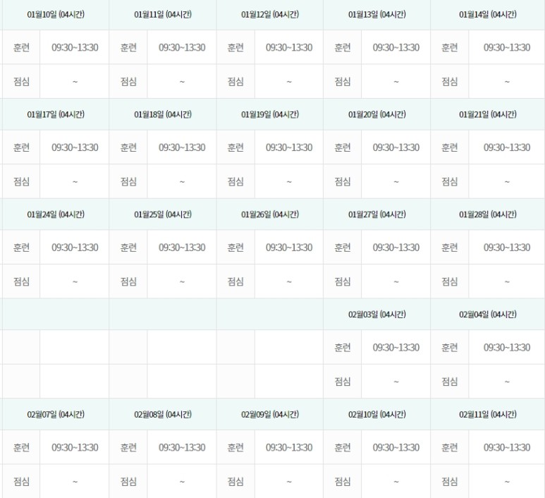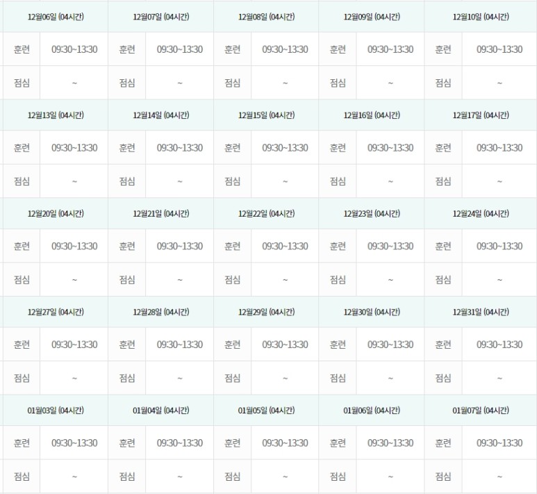 훈련시간 : 9시 30분 – 13시 30분