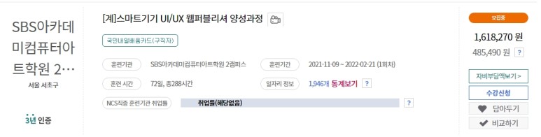 21년 하반기 UIUX 국비 UIUX 자격증을 살펴보자.웹퍼블리싱 학원 UIUX 국비 양성과정 커리큘럼